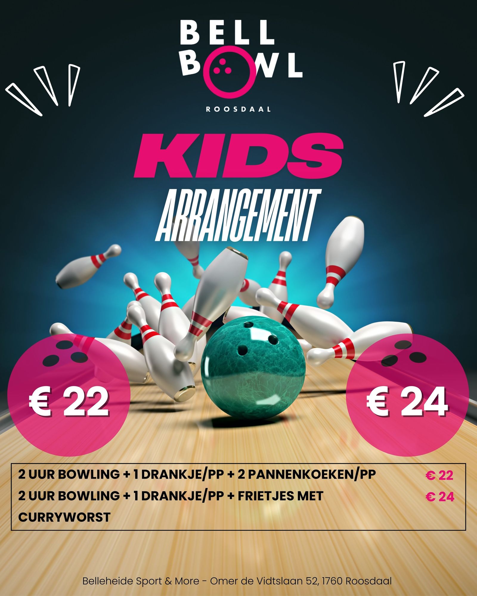 Bowlingschoenen zijn verplicht en worden gratis uitgeleend.