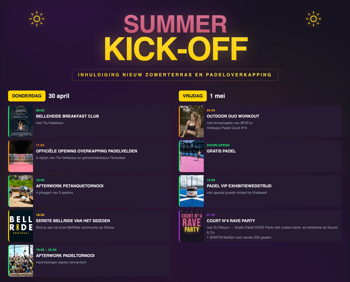 Kom en beleef twee dagen vol sport, muziek en plezier tijdens de Belleheide Summer Kick-Off!
